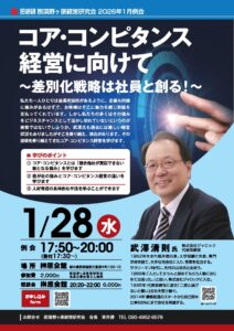 我々が持っている強みをどのように経営に活かし、社員さんと一緒にコア・コンピタンス経営としていくのかを学ぶ例会とします。